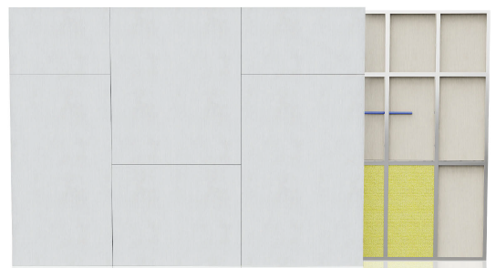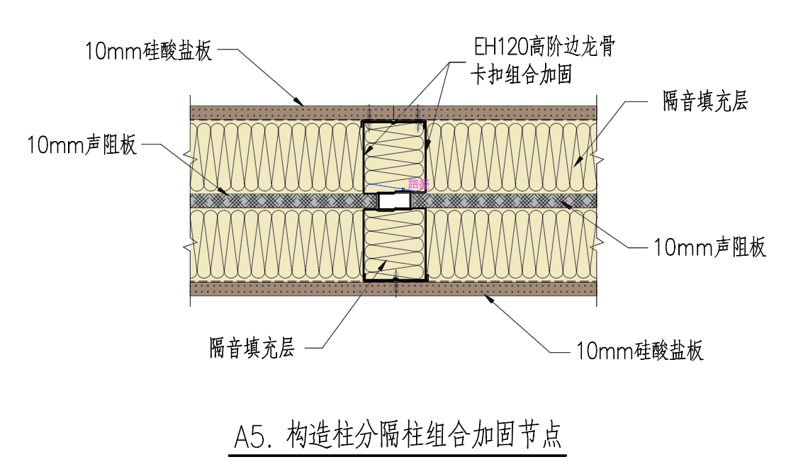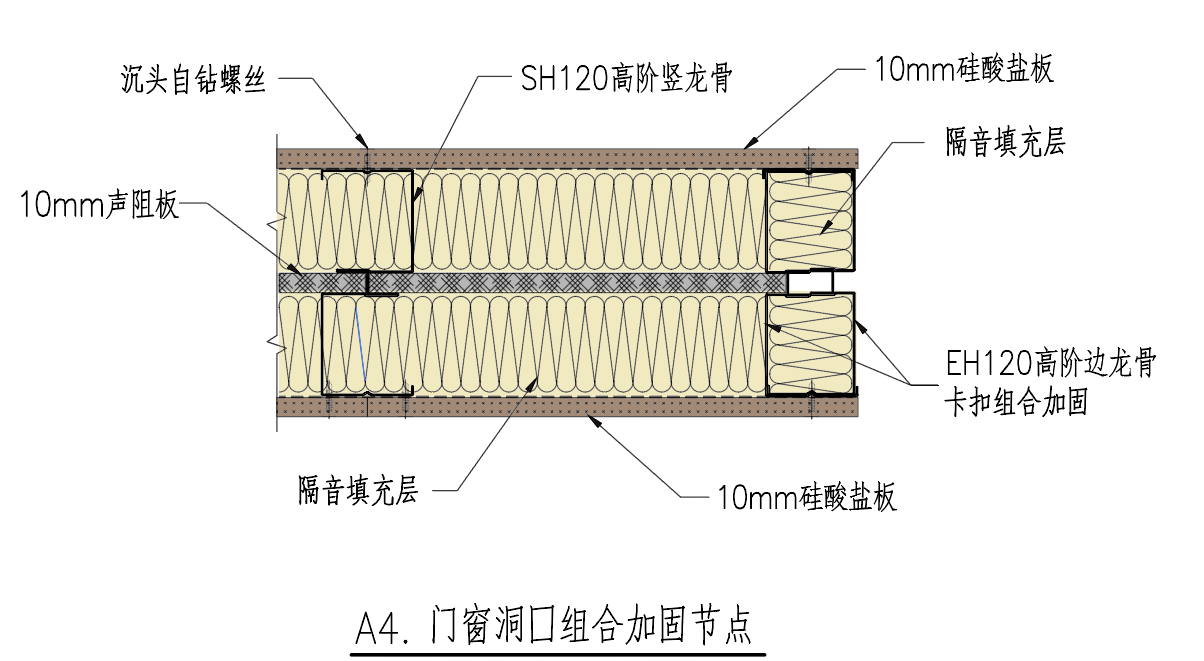d4. 双体分层构造,声阻板一隔两腔,防止隔声损失